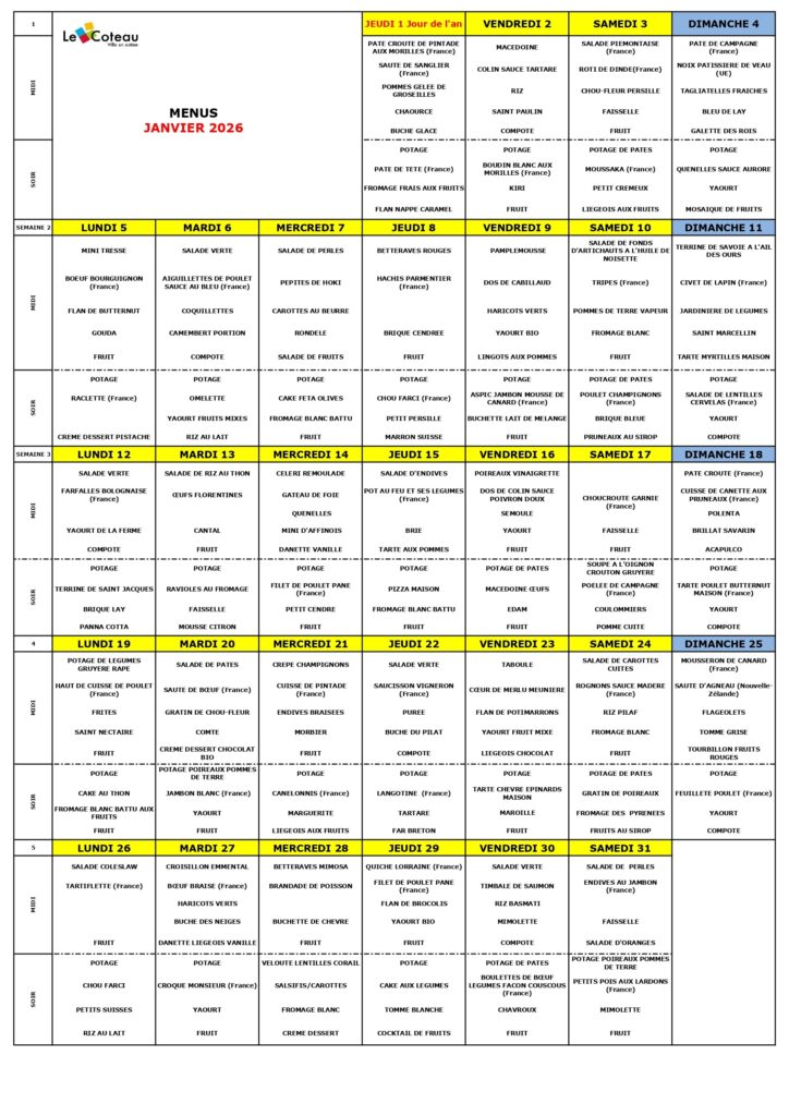 Menus de Janvier 2026