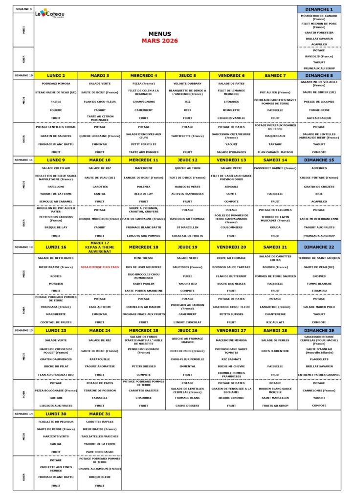 Menus de Février et Mars 2026